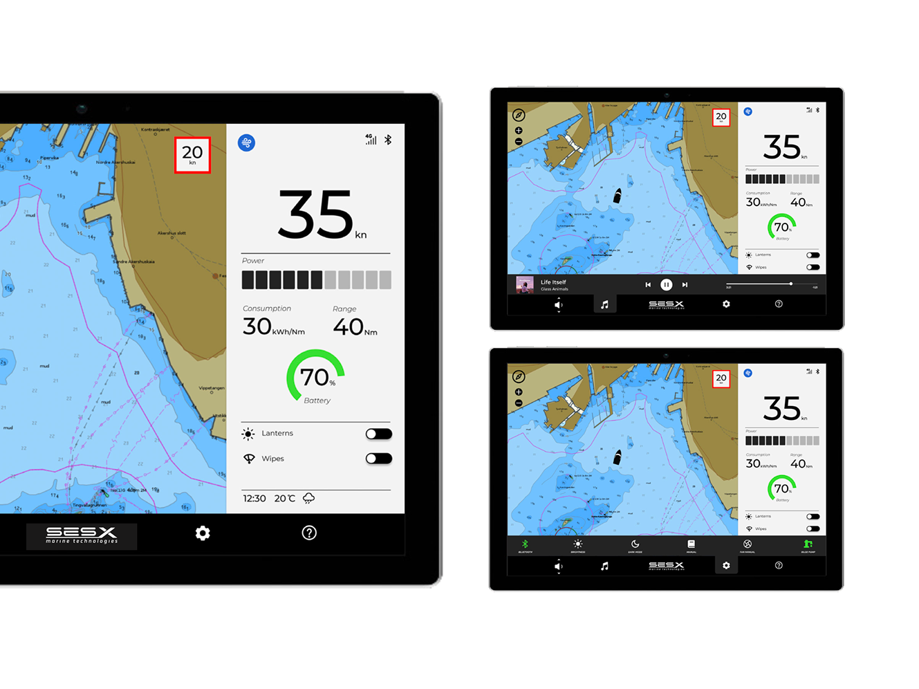 UX/UI design of a control panel and an adjoining app, for use on the company's electric leisure vessels.