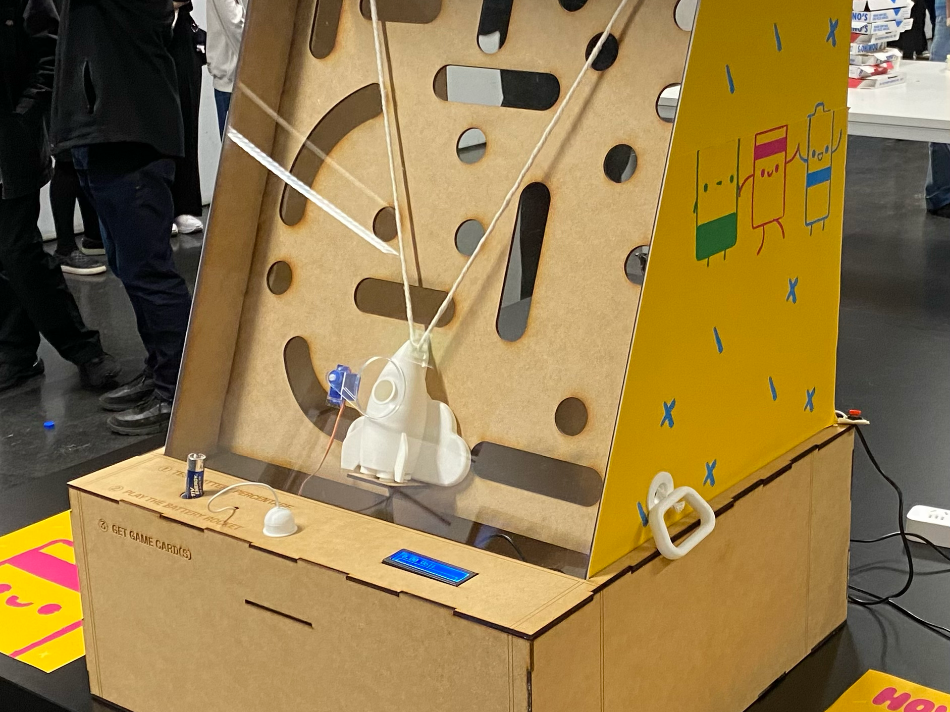 Innovative machine for sustainable battery disposal, with gamification principles and playful reward systems.