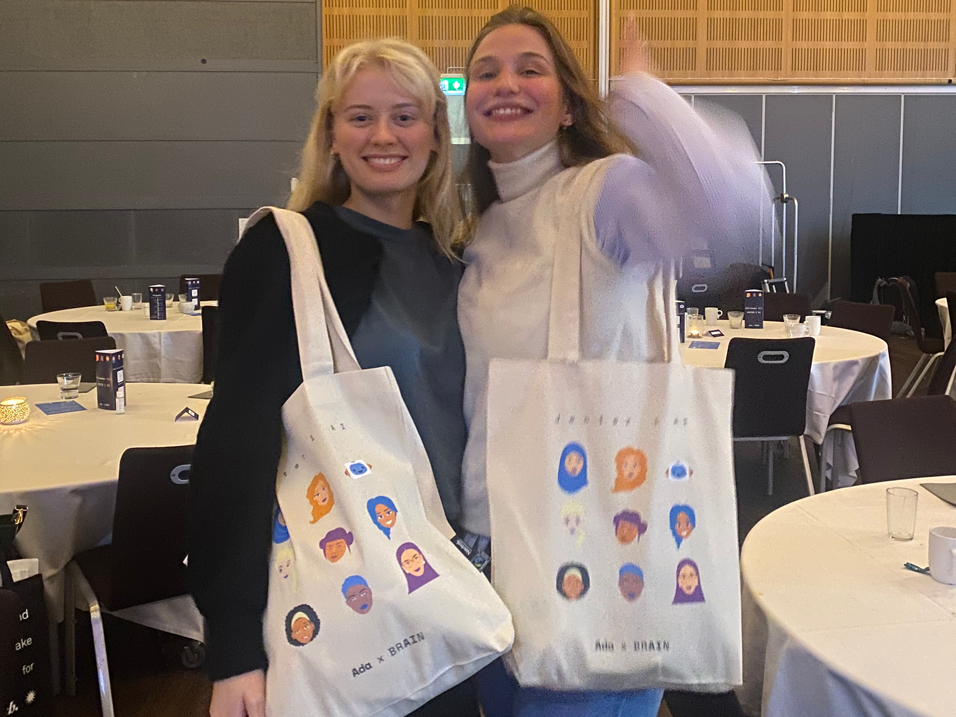 Speed project on merch design for giveaway tote bags at the yearly event "Girls in AI", by Ada and BRAIN NTNU.
